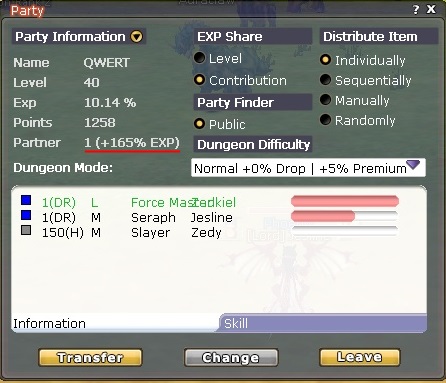 • You can level with up to 3 people together and can get up to 30% more EXP (each active player gives 15% more EXP)