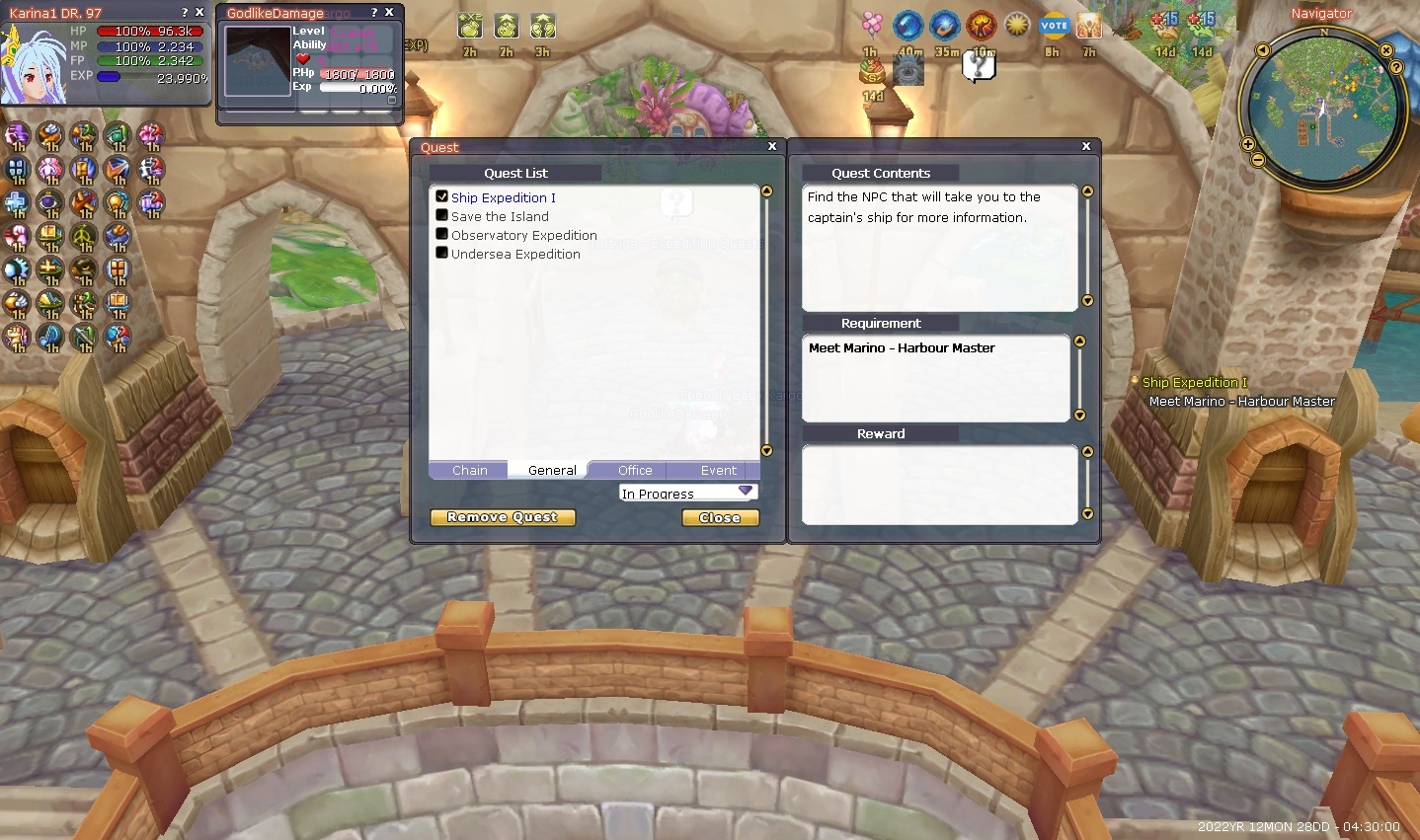 After you finish the quest, go to NPC Tortuga - Expedition Quest again and get the Ship Dungeon (Expedition Quest) > Talk to Marino Harbour Master > Submit your quest, Captain Loro and you will be teleported on a map and you will need to clear.