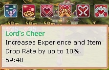 g. Lord's & normal Cheer - a cheer which gives you an additional 10% experience. Lord's cheer can be obtained by the ruling Lord of the server while the normal cheer can be obtained by other characters that have been online at least 1hr.