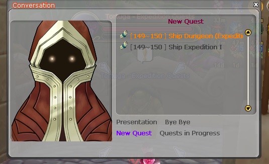 After you finish the quest, go to NPC Tortuga - Expedition Quest again and get the Ship Dungeon (Expedition Quest) > Talk to Marino Harbour Master > Submit your quest, Captain Loro and you will be teleported on a map and you will need to clear.