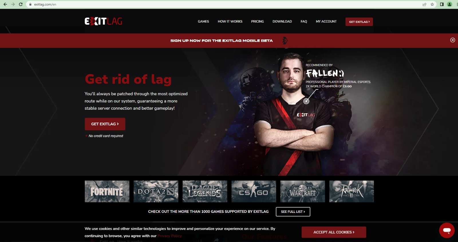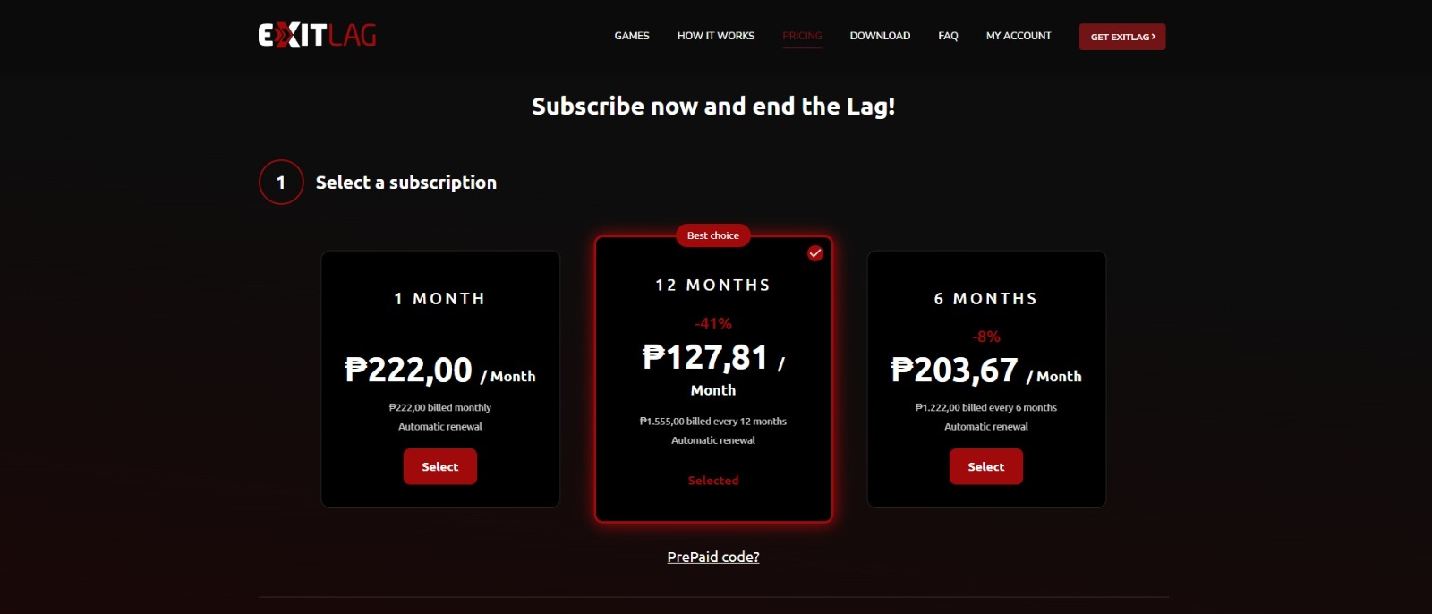 Step 2: Click get ExitLag or pricing on the top of the page and choose your plan.